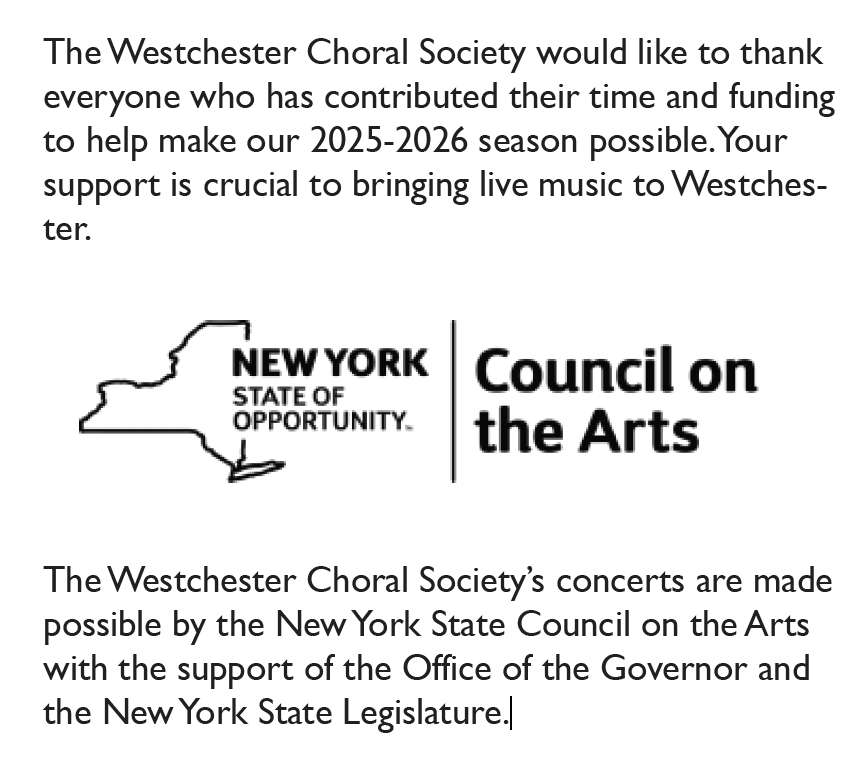 “The Westchester Choral Society brings such joy and excellence to every performance — we’re proud to support this local gem!”